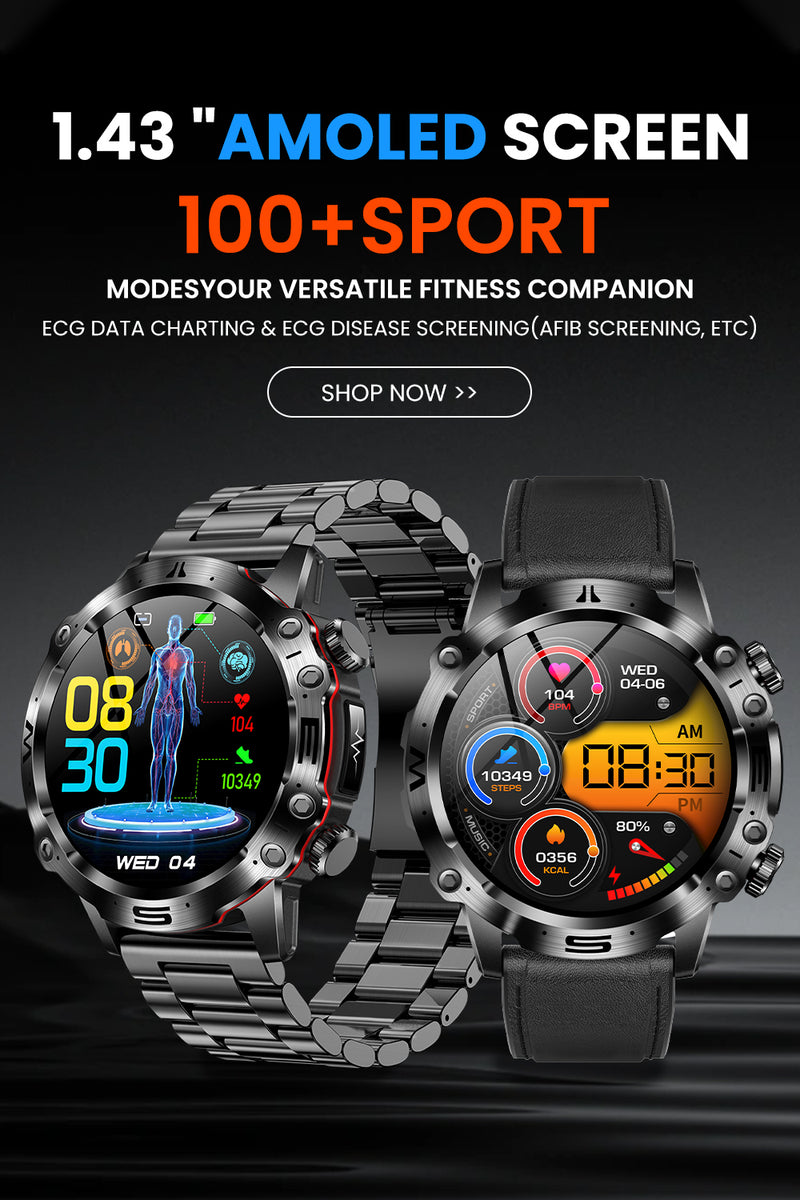 Bearscome Blood Sugar Blood Pressure Blood oxygen Sleep Monitoring Waterproof Smartwatch