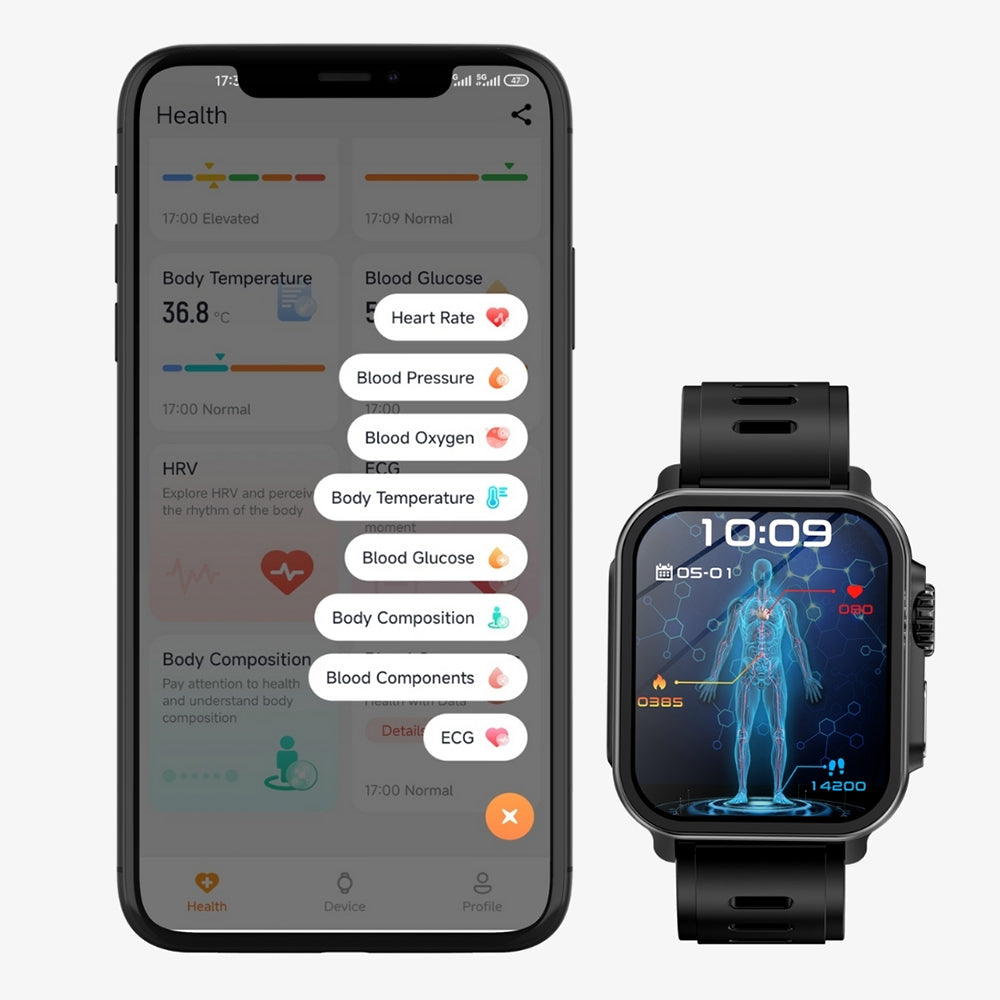 • Real-time monitoring of heart rate, sleep quality, ECG, and more.