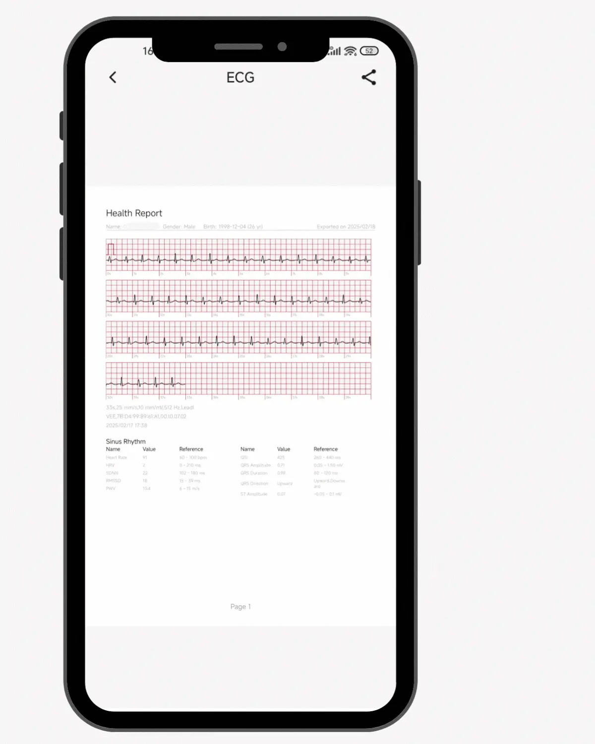 • ECG Function: Instant 60-second ECG test on the wrist, with immediate evaluation and analysis of the health significance of the current ECG. The ECG test can also be initiated through the app, with a detailed analysis of the health significance of the recorded ECG. Download and share the ECG report.