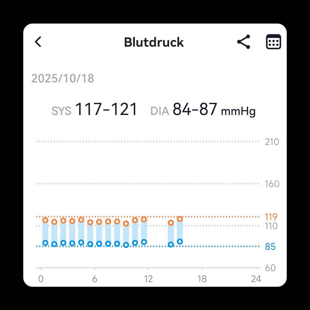Einstellungen für automatische Überwachung in der App: Herzfrequenz, Blutdruck, Glukose, HRV