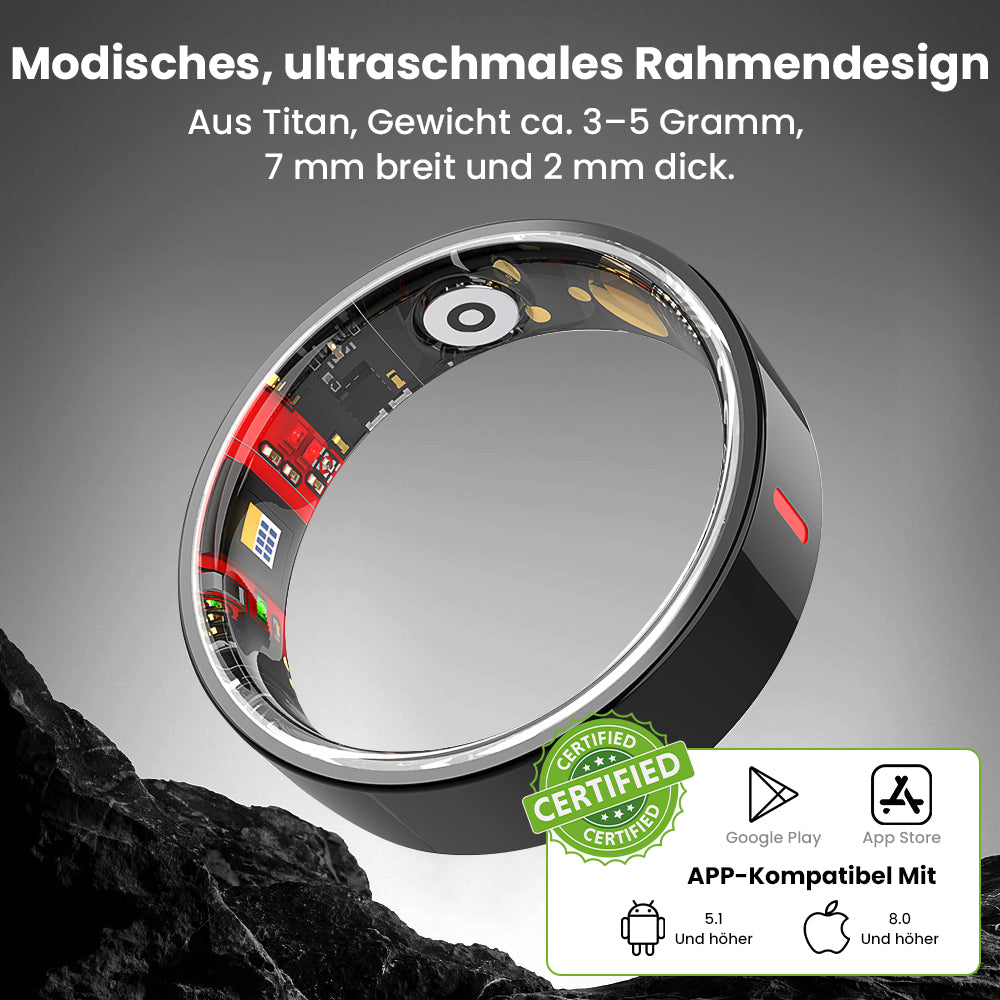 Sorgfältig auf Qualität und Präzision ausgelegt, liefert es wertvolle Einblicke in Ihr allgemeines Wohlbefinden (Blutzucker, Schlaf, Aktivität, HRV, Herzgesundheit, Zyklen und mehr).