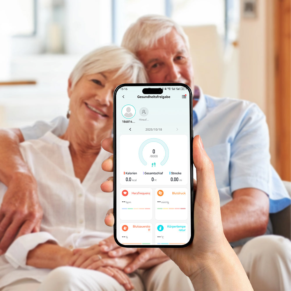 Fügen Sie Familienmitglieder und Freunde ganz einfach über den Pflege-Tab der App hinzu. Tippen Sie einfach auf die Seite eines Freundes, um dessen Gesundheitsdaten jederzeit einzusehen und sicherzustellen, dass jedes Familienmitglied rechtzeitig versorgt und betreut wird.